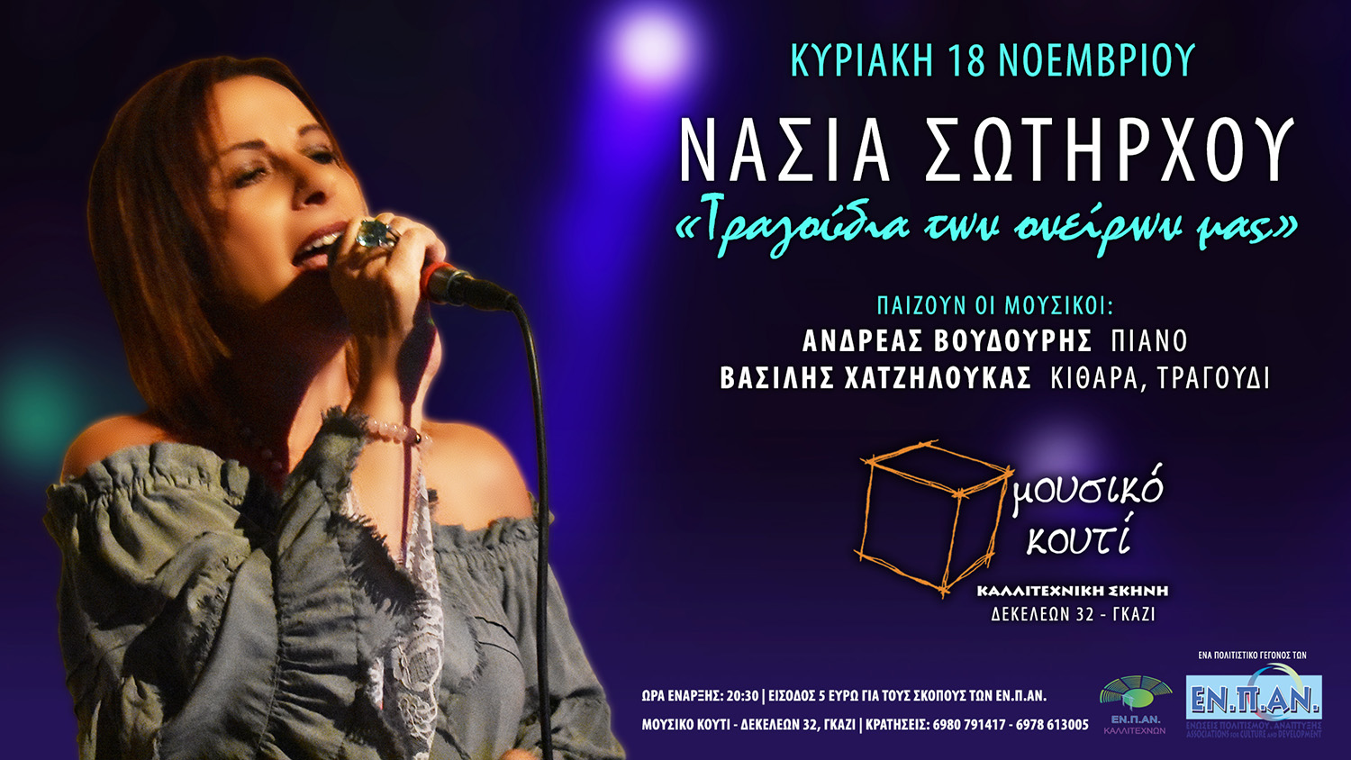 "Τραγούδια των ονείρων μας"Live στο Μουσικό ΚουτίΚυριακή 18 Νοεμβρίου 2018