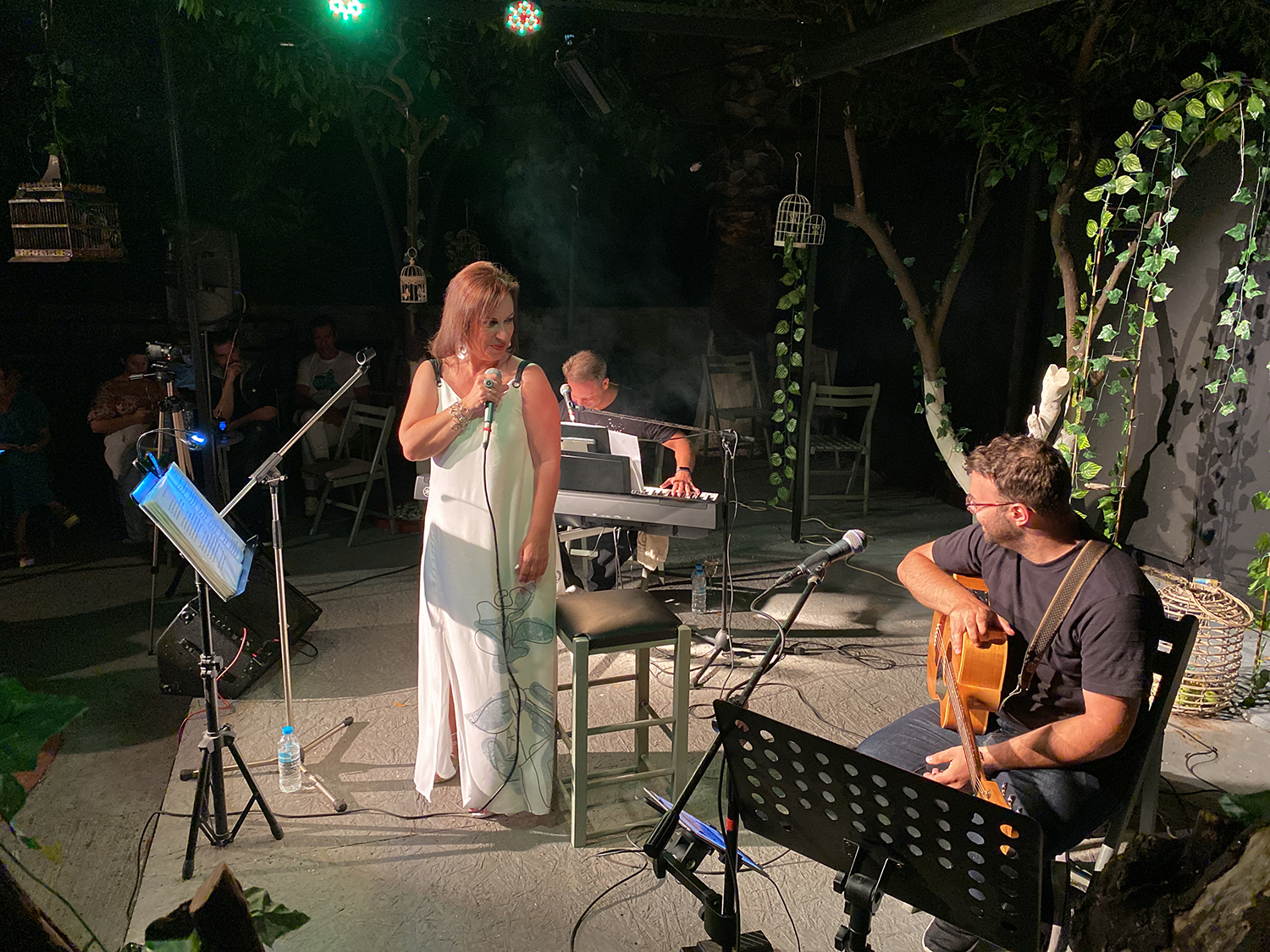 Κάτω από τον έναστρο Αττικό ουρανό μιας καλοκαιρινής βραδιάς, με συνοδοιπόρους της δύο εξαιρετικούς μουσικούς, τον Χρήστο Κουμούση στο πιάνο και τον Βάιο Πράπα στις κιθάρες και στο μπουζούκι, θα μας παρουσιάσει το καινούργιο της τραγούδι και θα μας ταξιδέψει σε επιλεγμένες και αγαπημένες μελωδίες, σε μουσικές νοσταλγικές, γεμάτες αρώματα, χρώματα και μνήμες από όλο σχεδόν το φάσμα της ελληνικής έντεχνης και λαϊκής μουσικής, ερμηνευμένες με το δικό της μοναδικό τρόπο, με διάθεση αισθαντική, δυναμική και κεφάτη! Μας υπόσχεται μία αξέχαστη βραδιά, που θα γλυκάνει τις ψυχές μας και θα μας γεμίσει συναισθήματα.