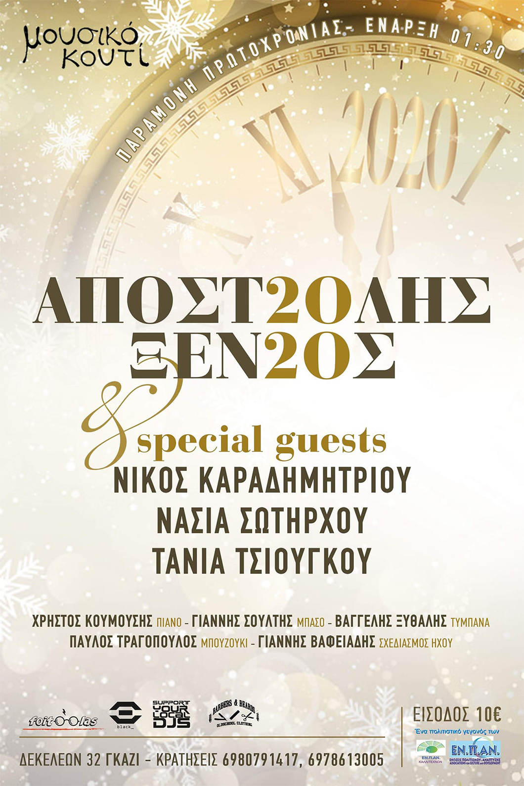 "Αποστόλης Ξένος & special guests"Live στο Μουσικό ΚουτίΤρίτη 31 Δεκεμβρίου 2019